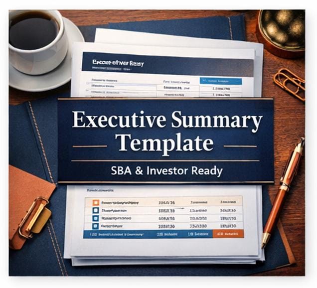 A complete standalone executive summary for when you need just this section - for SBA pre-applications, investor intro meetings, or accelerator applications: