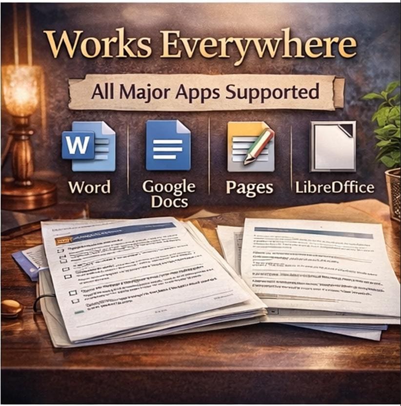 🖥️ Works everywhere - Microsoft Word (.docx), Google Docs, Apple Pages, and LibreOffice