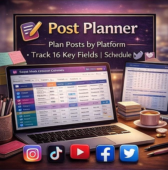 Are you posting inconsistently, scrambling for ideas last minute, or spending hours every week trying to figure out what to post and where? Are you creating content but have absolutely no idea whether it's actually working? This template was built to solve every single one of those problems -permanently. π