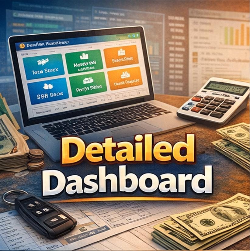 ๐ Reports -Dynamic monthly and annual summaries driven by your Settings year. Sales count by month, revenue trends, gross profit analysis, inventory aging, salesperson performance rankings, outstanding balance totals, and reconditioning cost breakdowns.