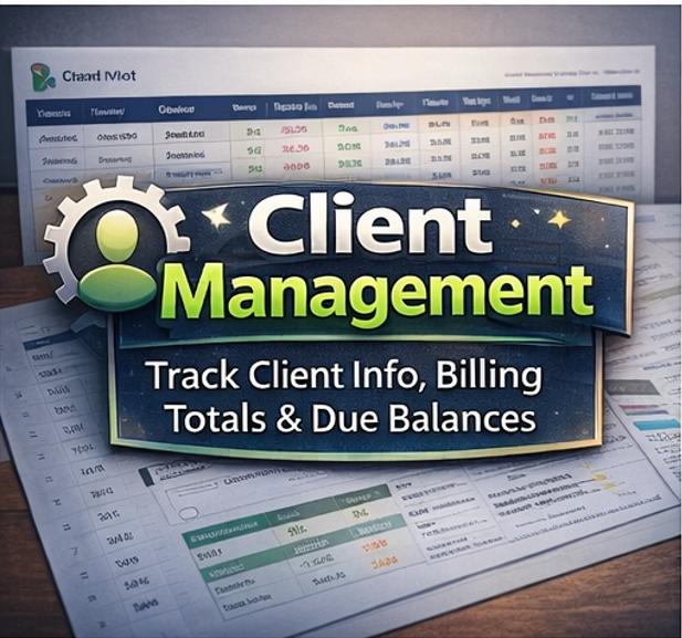 π₯ CLIENT MANAGEMENT -A full client directory with contact details, payment terms, and live auto-calculated totals showing exactly how much each client owes, has paid, and their outstanding balance -pulled automatically from your invoice data.