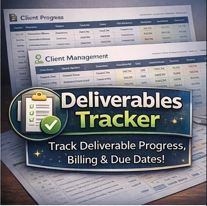 Q: Can I add more deliverables and clients? A: Absolutely. The system supports up to 1,000 rows per sheet. Just copy any existing data row and paste below it -all formulas, formatting, and dropdowns extend automatically.