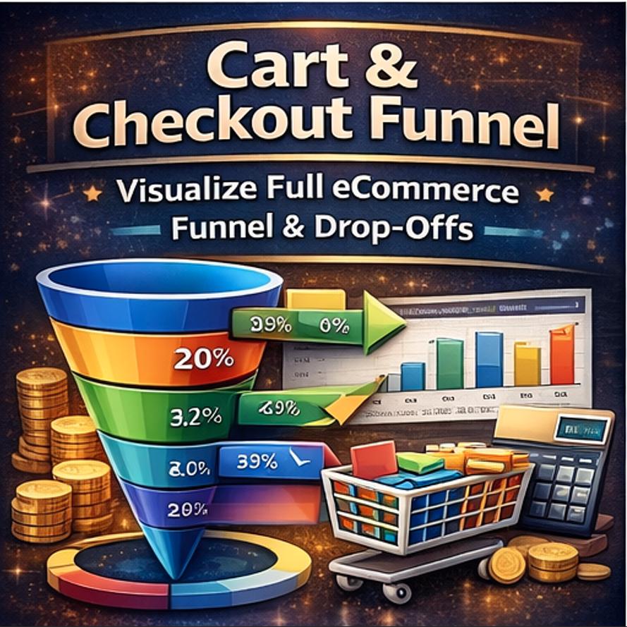 π Cart & Checkout Funnel Visualize your full funnel: Sessions β Add to Cart β Checkout Initiated β Checkout Completed. Drop-off rate auto-calculates at every stage. Month-over-month comparison built in. Spot leaks in your funnel instantly.