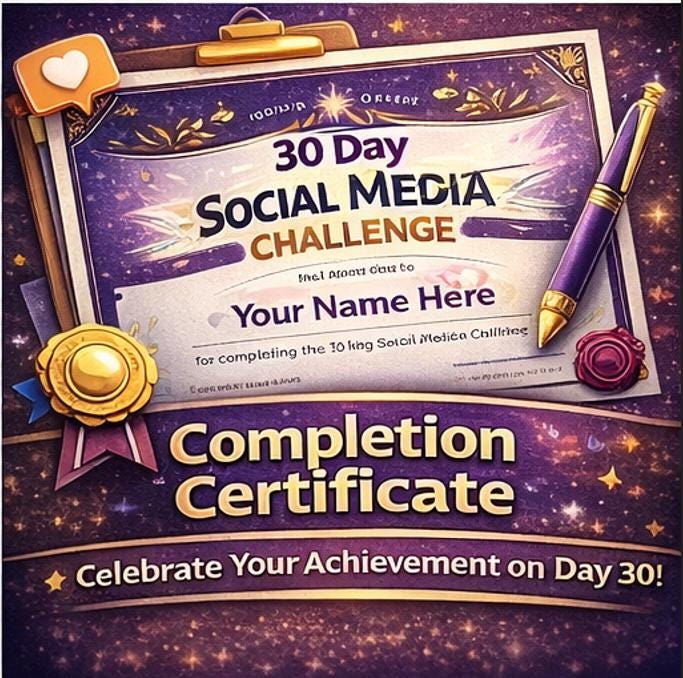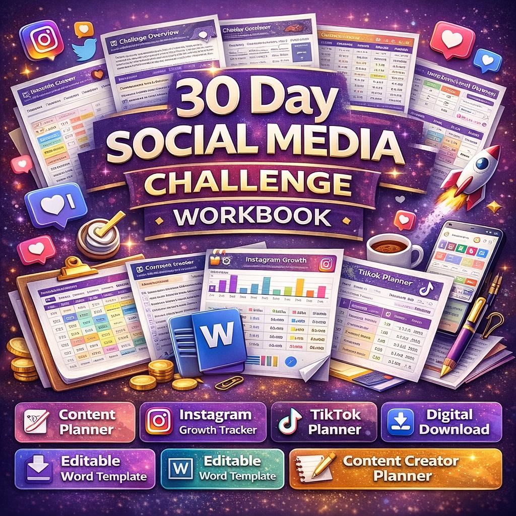 Introducing the 30-Day Social Media Challenge Workbook by ELDON-Digital -the ultimate content creation companion designed to help you plan every post, track every win, and grow your audience with confidence across ALL your favorite platforms. π