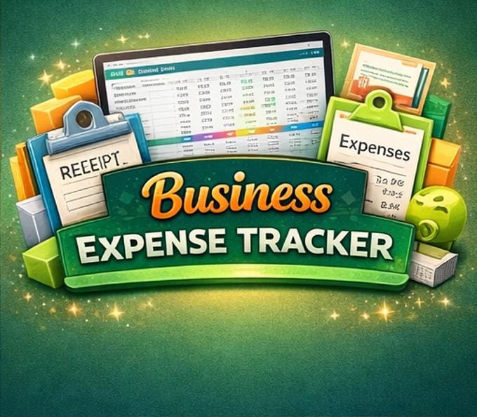 πΈ Expenses Tracker -Track every business operating cost with vendor, category, subcategory, description, amount, business use percentage, and deductibility status. Month, Quarter, and Year auto-populate from your entry date. An automatic category summary at the bottom shows your total spend and deductible amount by expense type