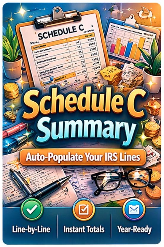 π Save 20+ hours during tax season π Never miss a deduction again π Avoid IRS underpayment penalties with accurate quarterly estimates π Hand clean, organized records to your accountant π Catch 1099 filing requirements before the January 31 deadline π Understand your business profitability month by month π Feel confident and in control of your finances