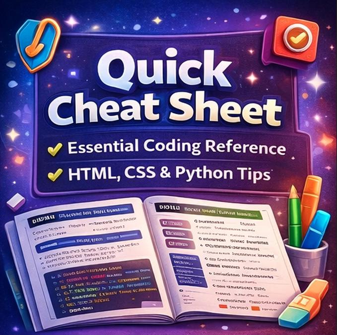โก Page 1: 12 essential keyboard shortcuts, 10 navigation shortcuts, complete Python command reference with loops, functions, variables, and imports, plus an 8-row error quick fix table ๐ Page 2: Full HTML tag reference, CSS property guide, Replit editor panel map, JavaScript quick reference with live code examples, and your Replit URL format reference