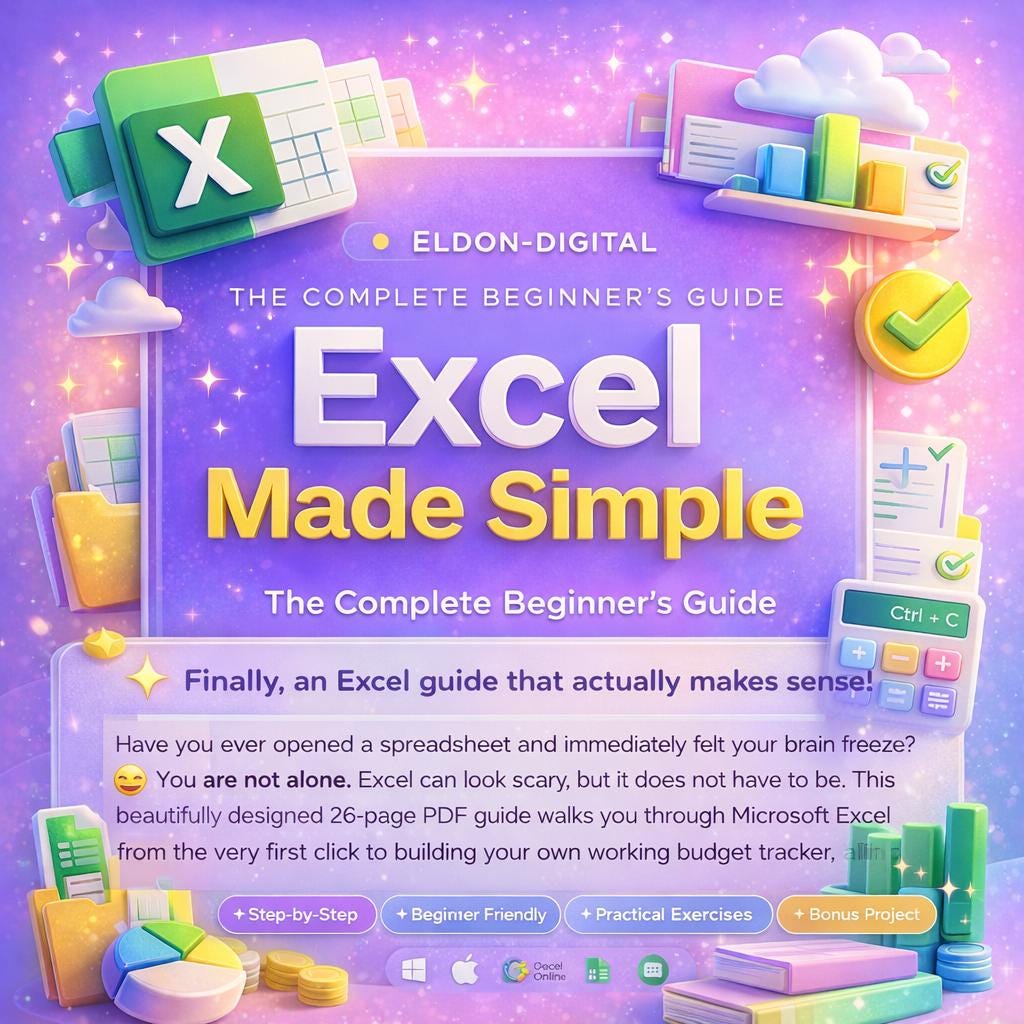 You are not alone. Excel can look scary, but it does not have to be. This beautifully designed 26-page PDF guide walks you through Microsoft Excel from the very first click to building your own working budget tracker, all in plain friendly language with zero tech jargon. π